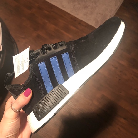 Blue strips on inside of foot