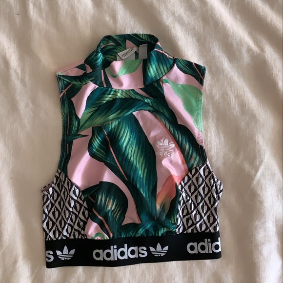 Adidas cropped tank top. This beautiful design makes going to the gym fun as well as spicing up a casual outfit. Size XS but can fit a Small comfortably as well.