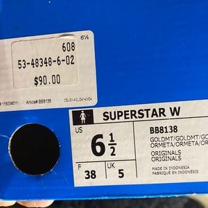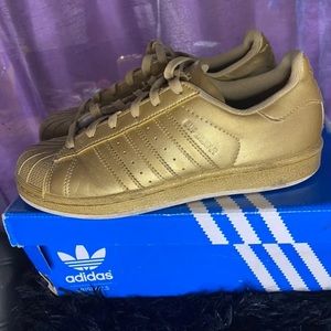 Gold superstar W adidas , size 6.5 , (insoles taken out)