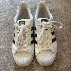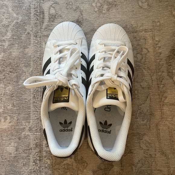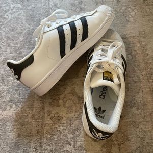 Adidas original superstar shoes. Purchased from ASOS. These are men’s size 5 which is equivalent to woman size 7.