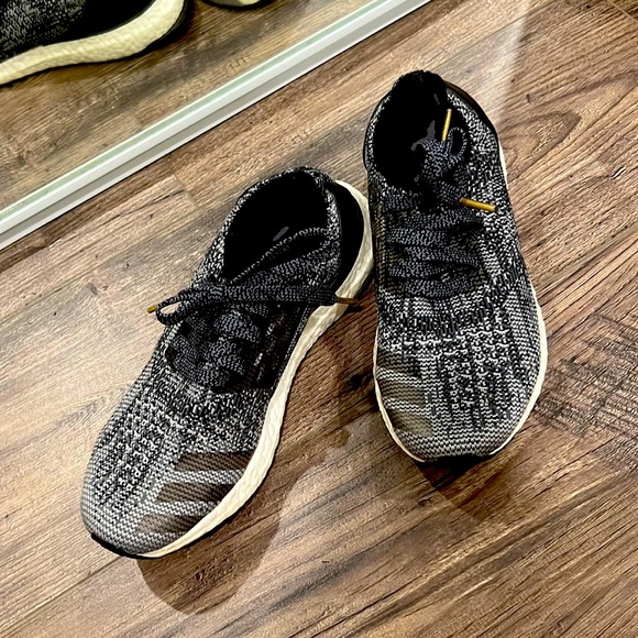 Adidas boost dark grey, light gray, black and white combination worn once almost like brand new mens size 6 women 7.5