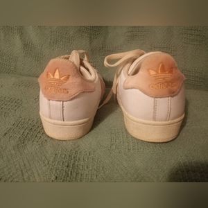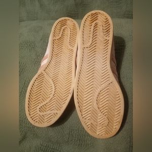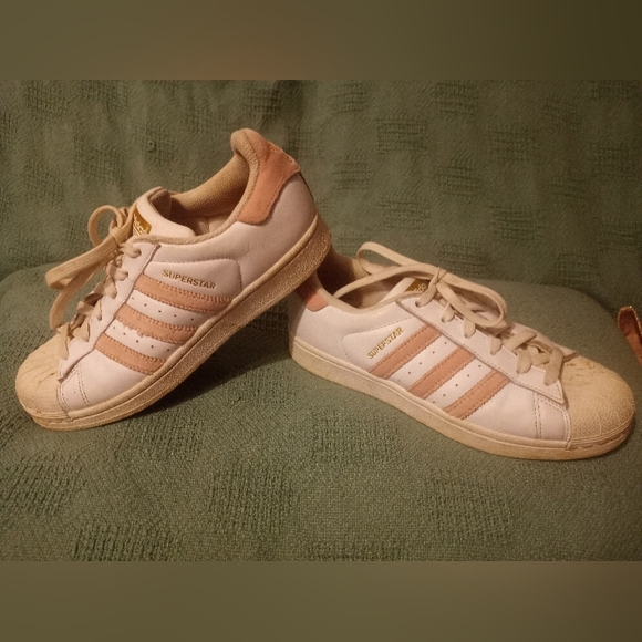used pink n white shell toe Adidas. size 5. lil dirty but could clean up.