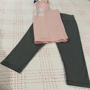 Adidas high waisted, 3/4 length tights. Pocket in waistband. No holes or stains. Excellent condition. Smoke free home. Pieces sold separately.