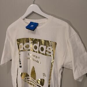 Adidas ADI SuperStar OG White/Gold Metallic T-Shirt Authentic Classic - Size M