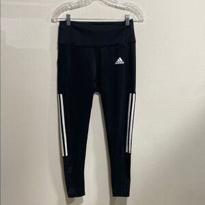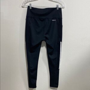 adidas leggings, 3-stripe pants, primegreen activewear, black athletic leggings, workout pants, side pocket leggings, eco-friendly leggings, adidas pants, moisture-wicking tights, women’s medium activewear