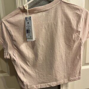 Features: Cropped fit, ribbed crew neckline, tonal embroidered logo