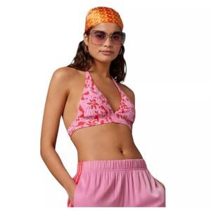 Adidas Originals “Island Club” Allover Print Bralette Top. Color is pink. Floral print throughout. Adjustable neck and back straps. Halter style tie. US size XS, lightly padded (removable).