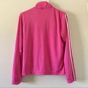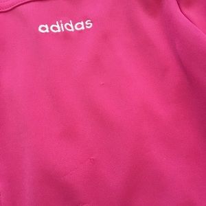 Adidas active jacket. Good for wearing outside while being active like going on runs or to the gym. Nice cool, quick dry material on the inside. Has some little snags on the front and sleeve and tiny wear on the zipper (shown in pictures) but in otherwise good condition. Also has pockets but hard to see in the picture.