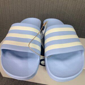 Adidas Adilette Aqua Slides Womens Size 9 Light Blue & White Stripes Slip-on