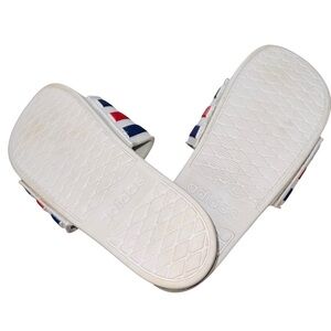 men’s Adidas slides, red blue white stripe sandals, casual slip on shower slides, athletic pool sandals, black sole comfort slides, summer beach footwear, sporty slip ons, Adidas Adilette slides, lightweight rubber sandals, everyday casual slides, quick dry sandals, men’s athletic casual shoes, logo strap slides, easy wear comfort sandals, retro style Adidas slides