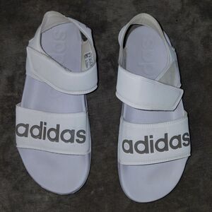 Adidas Adilette Strappy Sandal Womens Size 10 White Champagne Adjustable Slide