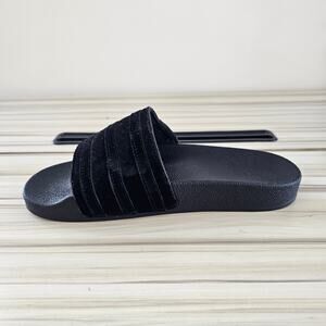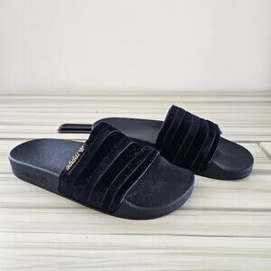 Adidas Adillette Women's Black Gold Metallic Velvet Slide Size 6