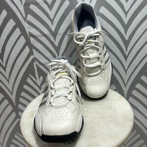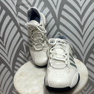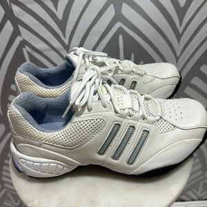 Adidas Adiprene Tech Feather 11 women’s golf shoes. Size 6. White with blue trim. Worn once. Open to offers