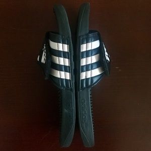 Adidas Adissage Black And White Slip On Slides With Adjustable Strap