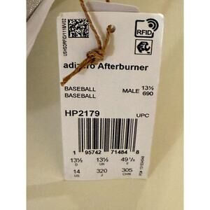 Step up your game with these Adidas Adizero Afterburner metal baseball cleats, designed for speed, agility, and lightweight performance. These cleats are brand new with tags and built to deliver explosive acceleration on the diamond.