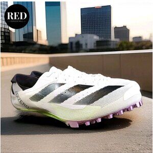 BRAND NEW - NWT - NO BOX -The Adidas Adizero Finesse Track Spikes in White Green IE5487 are men's athletic shoes designed for track and field activities. Featuring a lace-up closure and spikes for traction, these shoes offer a stylish and functional option for sports enthusiasts. The design includes a combination of Cloud White, Core Black, and Green Spark colors, with a sleek sneaker style that is suitable for various seasons and occasions. Manufactured by Adidas, these spikes are part of the adizero product line and are ideal for those looking for high-performance footwear.