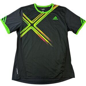 Adidas Adizero Short Sleeve Shirt Men's Sz L Black Neon Comfort Performance