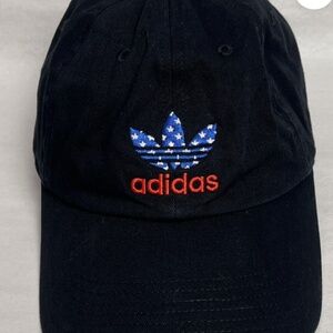 Adidas Adjustable Black Hat Patriotic Embroidered American Flag Theme Logo.