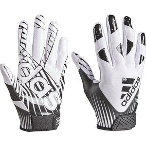 Play your best game with the adidas Adults' Filthy Quick 4.0 Receiver Football Gloves. These receiver gloves are made from 54% polyester, 29% silicone, 8% spandex and 9% nylon for durability. The GripTack palms provide great grip, while the Velcro closures allow for a secure fit.