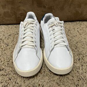 Adidas Advantage Clean White Leather Sneakers With Navy Heel Accent mens 12