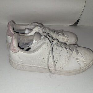 Adidas Advantage Cloudfoam Shoes Size 7 Womens White PINK HWI 28Y001