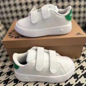 This listing is for a NWT/NIB Adidas Advantage Toddler Shoe in white/green in size 10K. Whether it's playtime at the park or family visits, these infants' Adidas Advantage shoes ensure tiny feet stay comfortable all day.