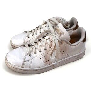 Adidas Advantage Women's Size 9 White on White Gold Heel Tab Leather Sneakers