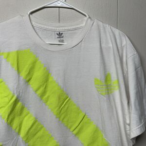 Adidas Adventure Graphic T Shirt White Neon Yellow Graphic Men L GUC
