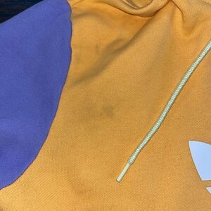 Sky Blue hood, yellow, purple sleeves & creamsicle body