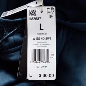 Adidas Aeroready Fleece Hoodie Blue Women’s Size L NWT Minimalist Athleisure