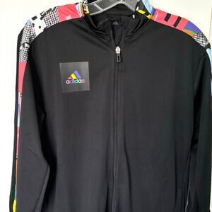 Adidas Black Tiro Pride LS Full Zip Soccer Track Jacket Size Small Graphic Print