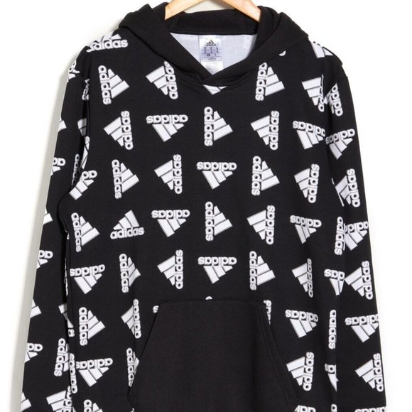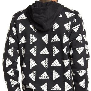 Adidas All Over Print Fleece Hoodie M Black New NWT Sweater Long Sleeves Large
