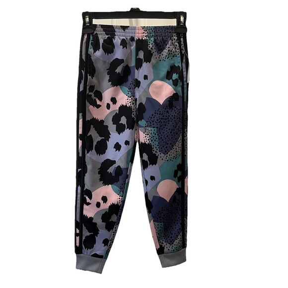 Adidas All Over Print Tricot Gray Purple Pink Joggers Pull On Pants Girls Size 6