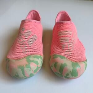 Size 12 Adidas Unisex Kids Cloud White, Beam Pink and Pulse Mint Sport Swim Sandals. An EVA footbed for soft cushioning and extra comfort in and out of the water. The grippy rubber outsole extends up over the toe. When it's time to towel off for the day, the breathable mesh upper dries fast. Perfect for the pool, beach, dog park, water park and so much more. No major flaws, light wear. Good to very good used condition.