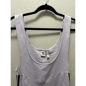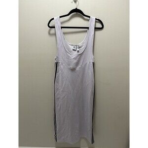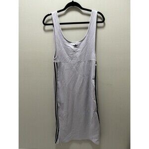 This Adidas Originals tank dress blends sporty and casual chic for an effortlessly cool look. Designed in classic white, it features signature Adidas three-stripe detailing along the sides and an embroidered trefoil logo on the back. The scoop neckline and racerback-inspired cut provide a flattering silhouette, while the stretch cotton blend ensures comfort and ease of movement. Perfect for casual outings, layering over activewear, or styling with sneakers for a laid-back vibe.