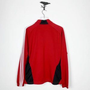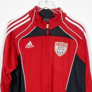Adidas Aspen United ClimaCool zip up jacket. Red with black panels & 3stripe white sleeve. 2 front zip pockets. Elastic cuffs. Inner adjustable elastic cord at bottom. In excellent condition.