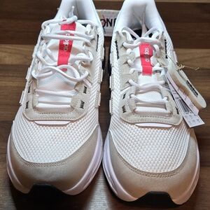 Adidas running shoes in white and black with red accents. Stylish and comfortable for everyday wear. BRAND NEW IN BOX