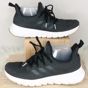 Adidas Asweego Women's Running Shoes Size 7.5 Core Black / Grey Six / Grey Two. Shoes with flexibility and responsiveness for multisport training. These shoes have a knit textile upper that hugs the foot for a sock-like fit. Pillow-like midsole cushioning provides long-lasting comfort. Durable rubber inserts at the forefoot and heel provide added grip so you're ready for unexpected terrain.