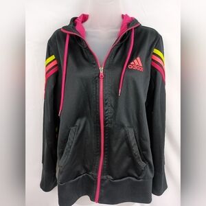 Adidas Athletic Black Zip-Up Hoodie Hot Pink and Yellow Stripes (#1,303)(C)