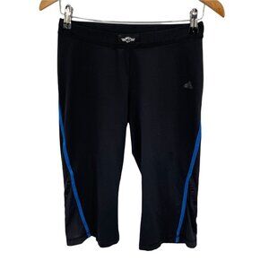 Adidas Athletic Capri Pants Womens 8 Black Polyester Blue Trim Mesh Panel