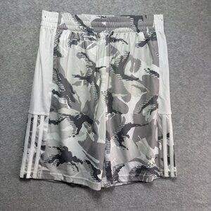 Adidas Athletic Shorts Size Large 14/16 White/Gray Camo White Stripes Aeroready