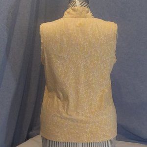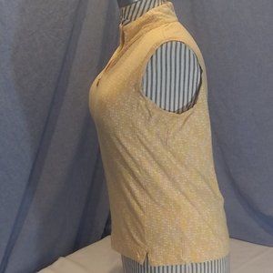 Adidas athletic stretch peach, pink, and white dotted pattern colored sleeveless top with 1/4 zip high collar neck-line. In good condition. Size listed as on tags. Please see pictures.