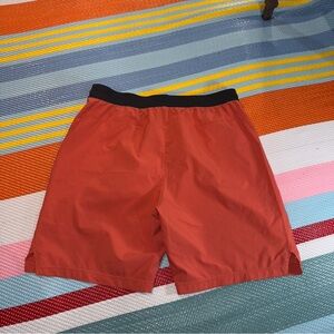 Bold red shorts with black waistband. Ideal for sports and workouts. Lightweight and breathable.