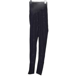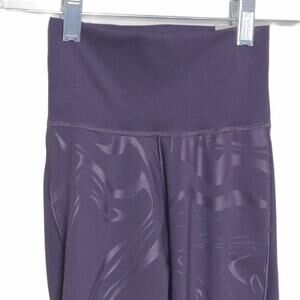 Wide waist (high rise/high waisted). Snug feel. Flattering sport tights. Leggings have a swirl pattern with plain sides.