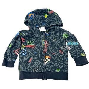 Adidas Baby Boys Graffiti Streetwear Allover A Print Full Zip Hoodie Size 9M