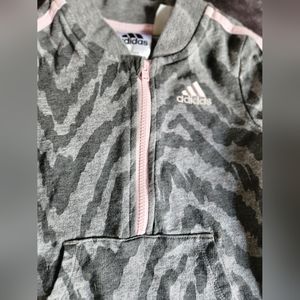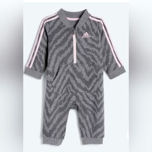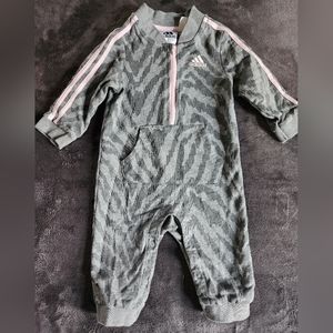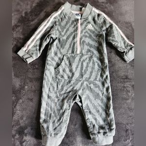 Adidas Baby Girl Charcoal Grey Heather Long Sleeve Zip Front Printed French Terry Coveralls. Snap closure between legs. It's only worn once.