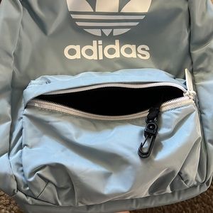 Adidas mini backpack in baby blue and white Only used a few times, fits a bunch of stuff Very cute color way!!