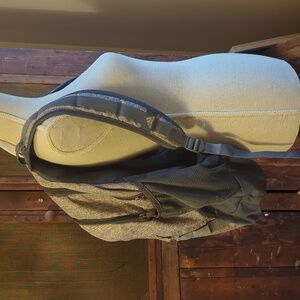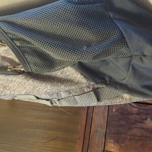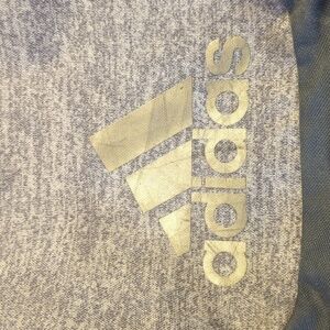 Large Adidas Grey Backpack, approx 22 inches tall by 18inches wide. Laptop sleeve/main compartment plus 3 additional zippered compartments. Clean, minimal wear with the exception of slight discoloration to the logo (see photo) and 2 tiny frayed spots on the L water bottle holder. Comfortable, stretchy straps near shoulder area. My daughter loved this backpack.
