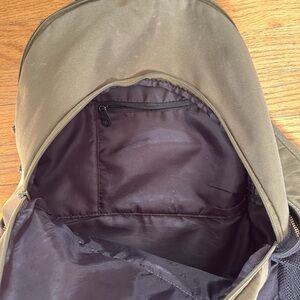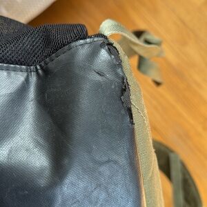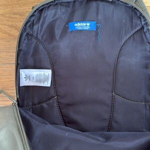 Adidas backpack. Olive green and black. Signs of wear. Bottom of bag is peeling in some areas, see pictures. 2 big compartments that fit laptop and one small front compartment.