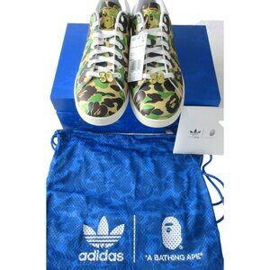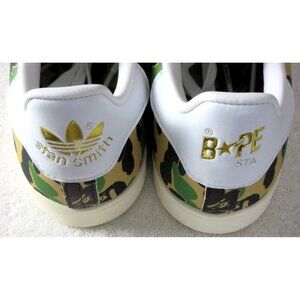 Adidas Bape x Stan Smith Men's 30th Anniversary Camo Shoes Size 10 NIB IG8949. Adidas Bape x Stan Smith Men's 30th Anniversary camouflage leather shoes. Brand new with the original box in size 10. (U.S.) This listing includes the original box, extra Bape camo lases, and Adidas/ Bape dust bag as shown. Leather in material, these shoes are a must have for the Adidas/Bape/ Stan Smith fan! Adidas style # IG8949 . Get these here shipped to your door fast! As always, we guarantee authenticity. Please email us with any questions. Thanks!